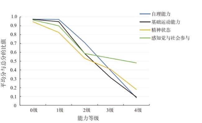 2.1 不同能力等级老年人的能力评估各维度得分